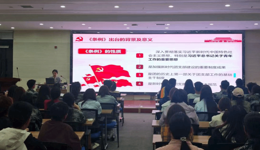为深入学习贯彻共青团组织的工作要求,切实筑牢青年员工的信仰根基,2025年9月4日,体育平台官网团组织于藏医公司学术报告厅面向2025级全体新生组织开展了题为“学习团支部工作条例,筑牢青年信仰根基”的专题示范团课。本次团课由南星梅老师主持,22级中药班团支书马秣野主讲,围绕《中国共产主义青年团支部工作条例(试行)》(以下简称《条例》)进行系统全面的讲解,以增强新生对共青团职责使命和工作规范的理解与认同。