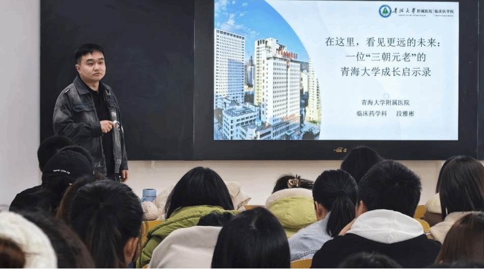 段老师回顾求学路,坦言硕士阶段因科研压力曾迷茫想放弃,幸得公司培养平台与导师指导才走出困境并选择继续深造,借这段“山重水复疑无路,柳暗花明又一村”的经历,让同学们认识到科研道路上坚持的重要性。分享博士研究经历时,他以高原药物研究为例,结合在海拔4300米开展研究的艰辛、面对上百条审稿意见修改论文的挑战,强调学术规范与创新,诠释科研工作者的严谨与坚韧;还分享参与学术会议、编撰教材等经历,拓宽同学们对药学专业发展的认知,并结合行业趋势,建议大家积极提升学历以增强就业竞争力。