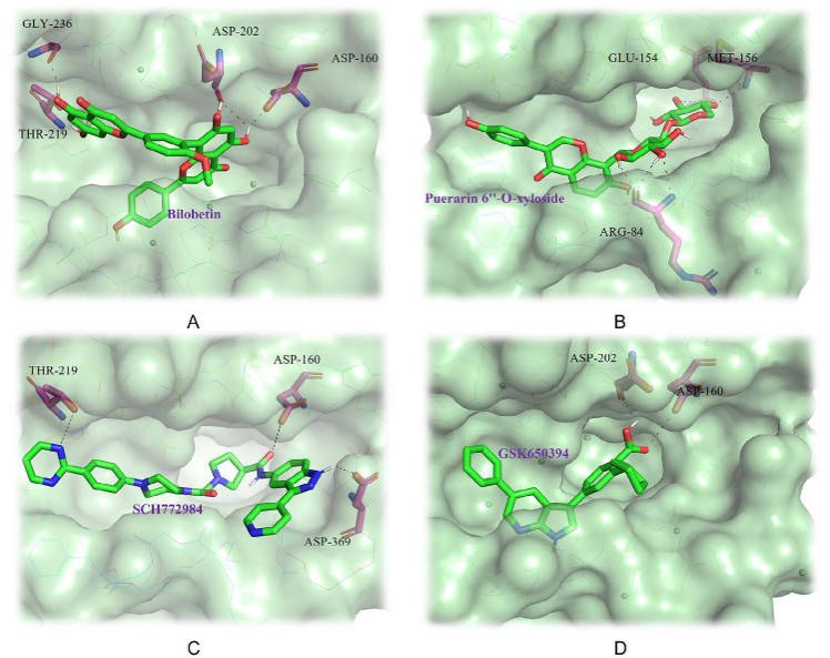 图1. 4个抑制剂与ROCK1的结合模式