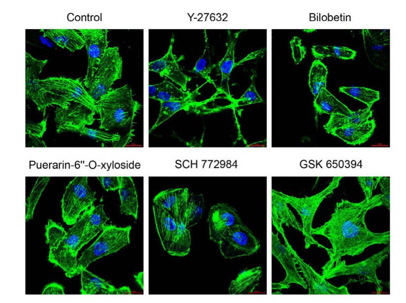 图2. 4个抑制剂对肿瘤细胞骨架的抑制活性
